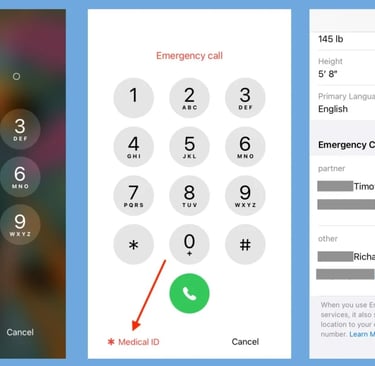 Tap on Emergency, and then tap on Medical ID in the bottom left corner of the emergency call screen.